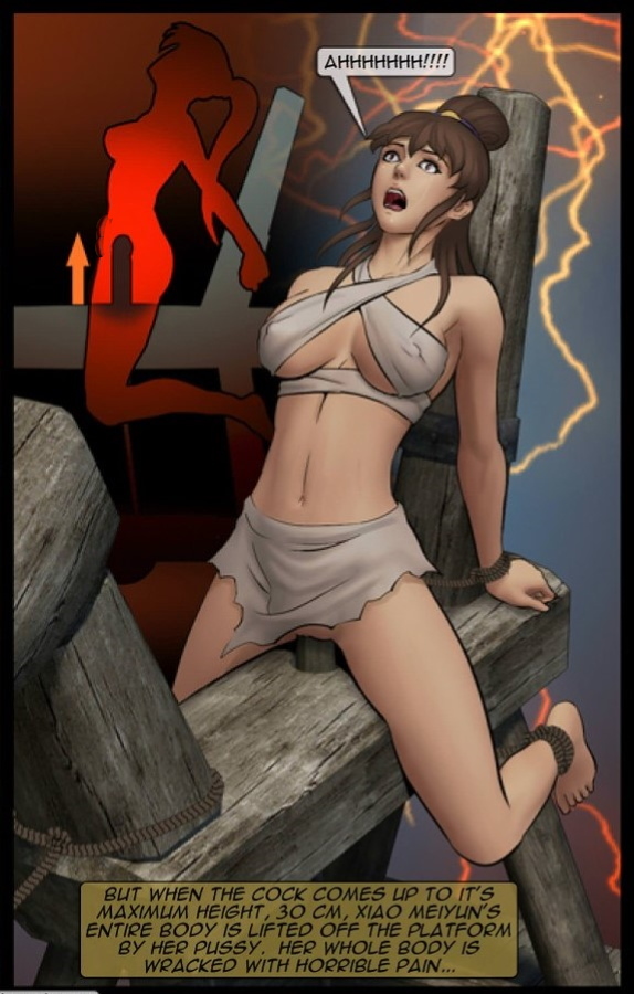 Xiaobian provides as a modern translation from Chinese: pissing, urinate. What did that have to do with the torture on the wooden donkey? Did the unfortunate victims piss themselves in pain and fear? More likely it meant the discharge of much fluid from the bladder and the lap of the tortured woman, induced by the extreme and brutal stimulation of the ascending and descending piston inside her vagina...
