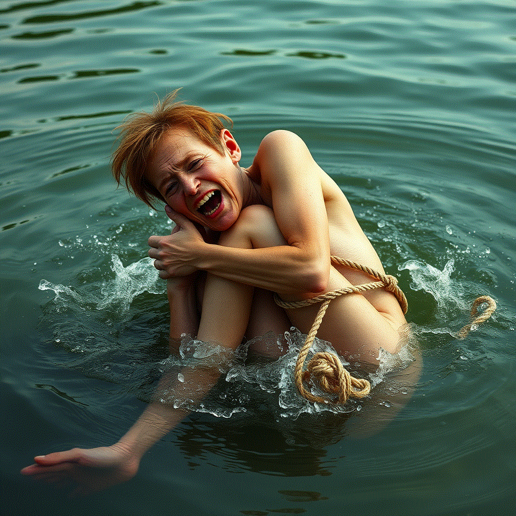 Finally, they were done. She lay a grotesque, helpless bundle of flesh and rope. With a grunt and a collective heave, two of the men lifted her, her body stiff with terror. For a horrifying moment, she hung suspended in the air, framed against the moonless sky, before they swung her out and tossed her with a mighty splash into the middle of the pond.