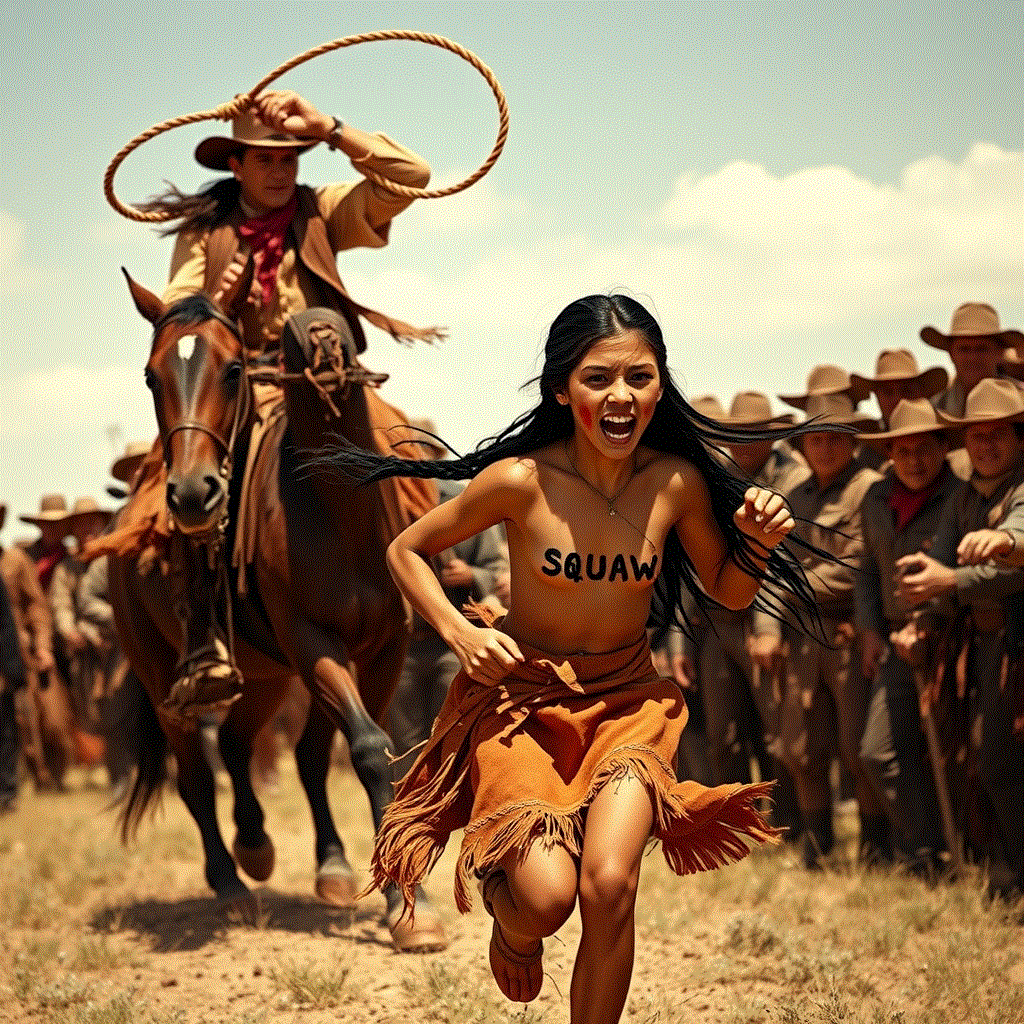 The lasso circling his head he chased her across the prairie. His buddies cheered him on as she ran in panic, gasping and stumbling. Once he roped her, he would drag her back into town, behind his horse.