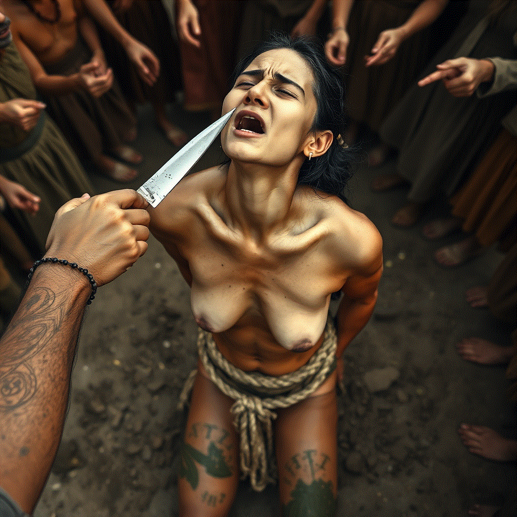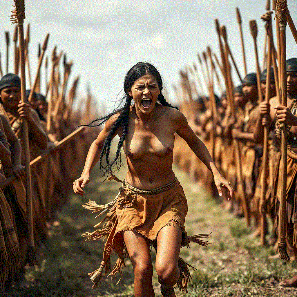 She was caught in adultery. They forced her to run the gauntlet, out of the village. Stumbling between two lines of villagers, striking her with clubs from both sides. Out on the prairie her punishment would continue. Since one man was not enough for her, she would be staked out where any man who wanted could have her.