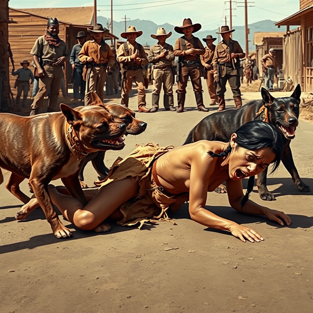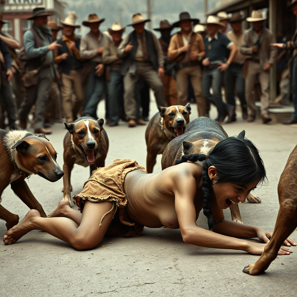 Back in town they set the dogs on her. Everyone gathered around to place bets on how long she would last.