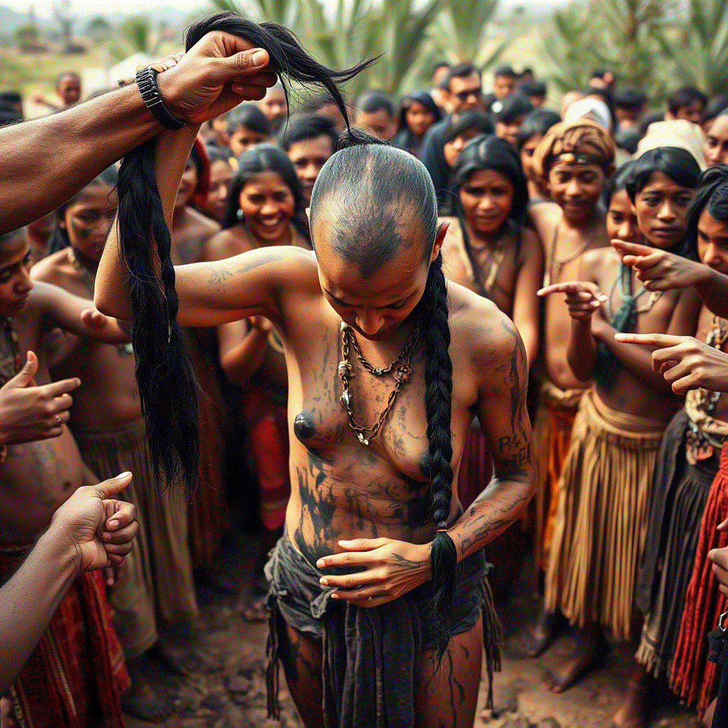 Among the Apache adulteresses were strictly punished. First they would have their long braids cut off and their scalp, dry shaved with a knife blade.