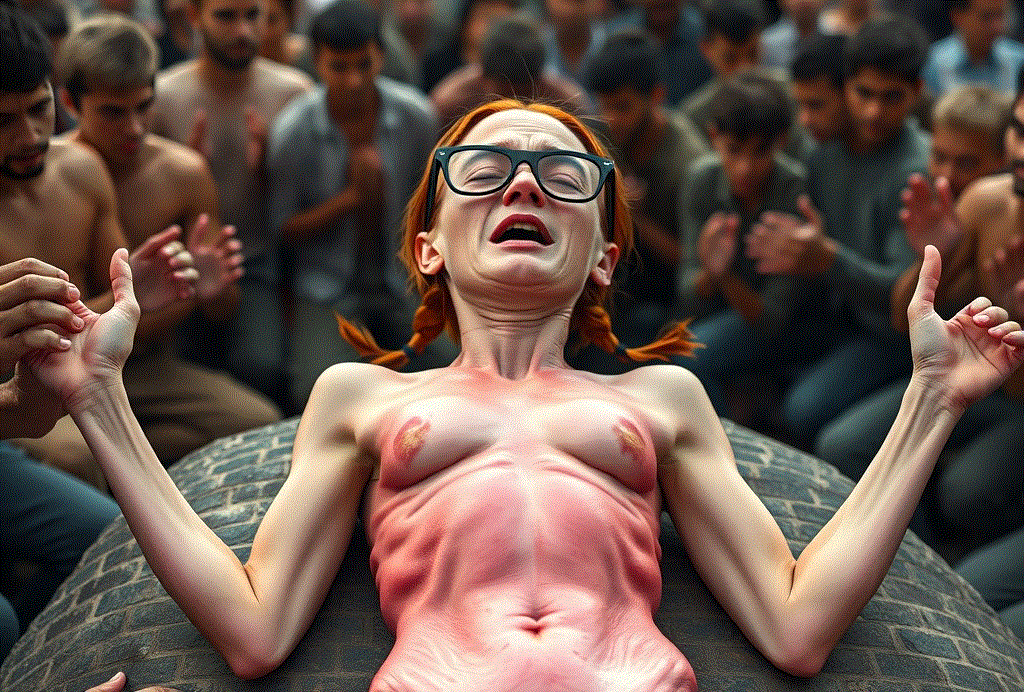Between screams the exhausted woman gasped out pleas for mercy. These were greeted with curses. This is the righteous punishment for unnatural sin. An over and over the constant chanting of the mob.