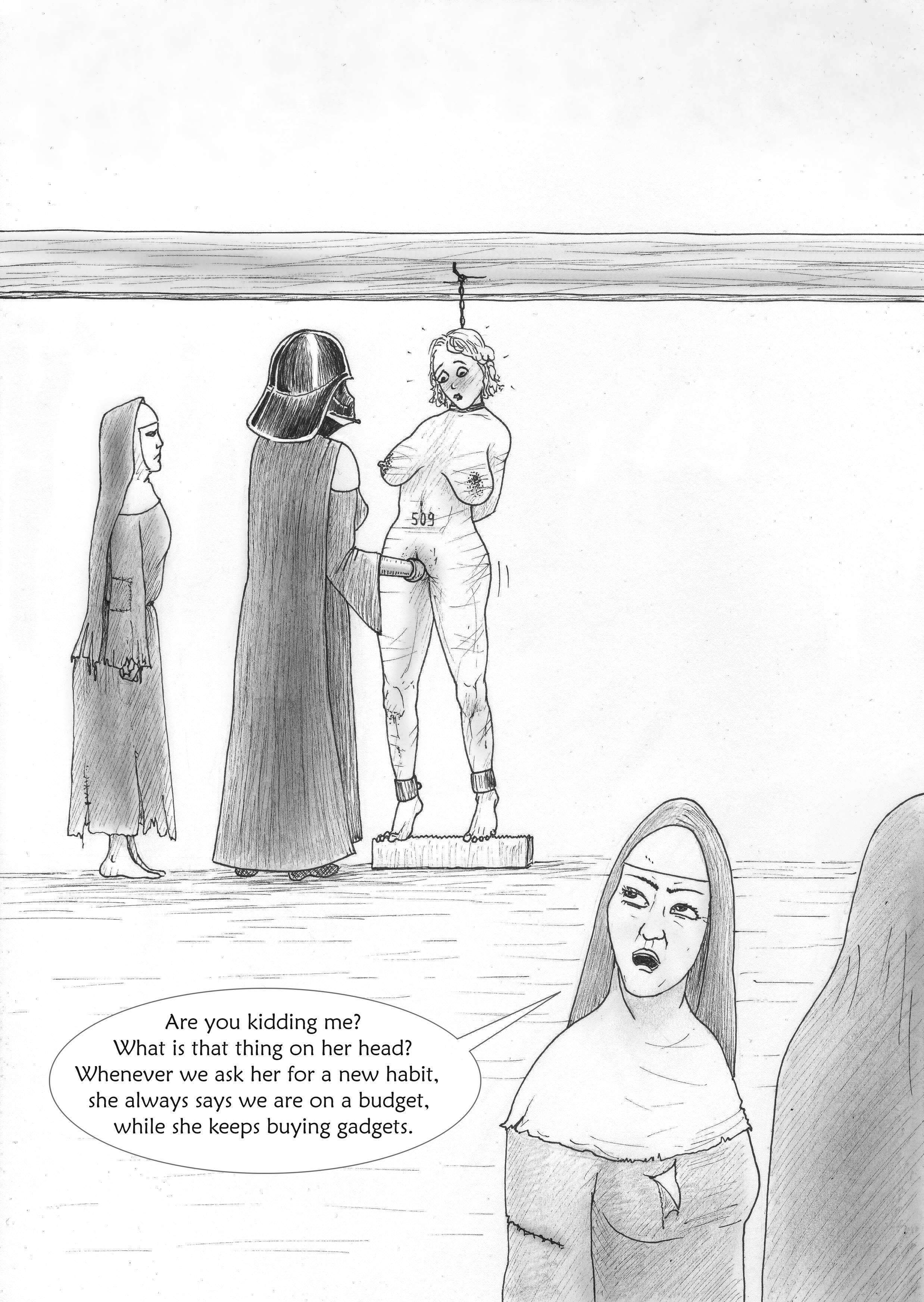 Well, if the Mother Superior sees masturbation as a sin and a disgrace and she absolutely wants to come out with a confession, then that's fine too... The tribunal may already see the beginnings of heresy and order further questioning under torture, it will be difficult to put her on the rack... Sister Frank would probably have some interesting ideas, like the witch's chair with the heated devil's phallus, or hanging her by the breasts, supported from below by the Judas Cradle... and later the execution by impaling her over a small fire....