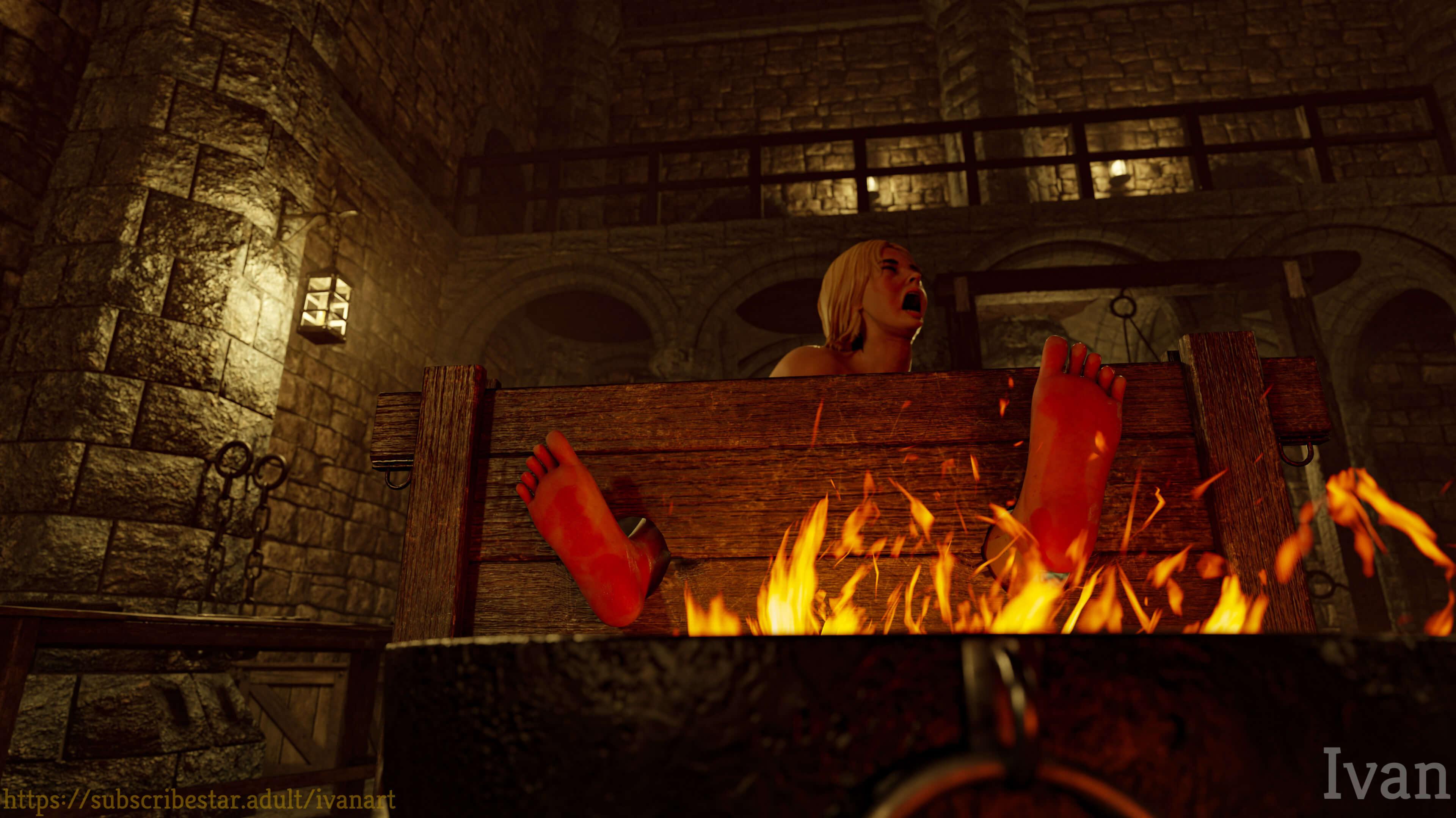 Magnificent work on the flames and burns. Burning alive isn't my cup of tea, but your rendering of it is really quite good.