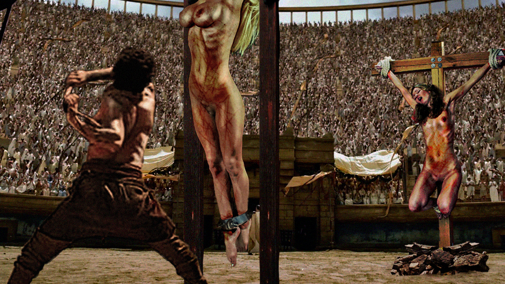 A young college student volunteers to teach at a Christian missionary school on a remote island. Ironically, she is crucified!