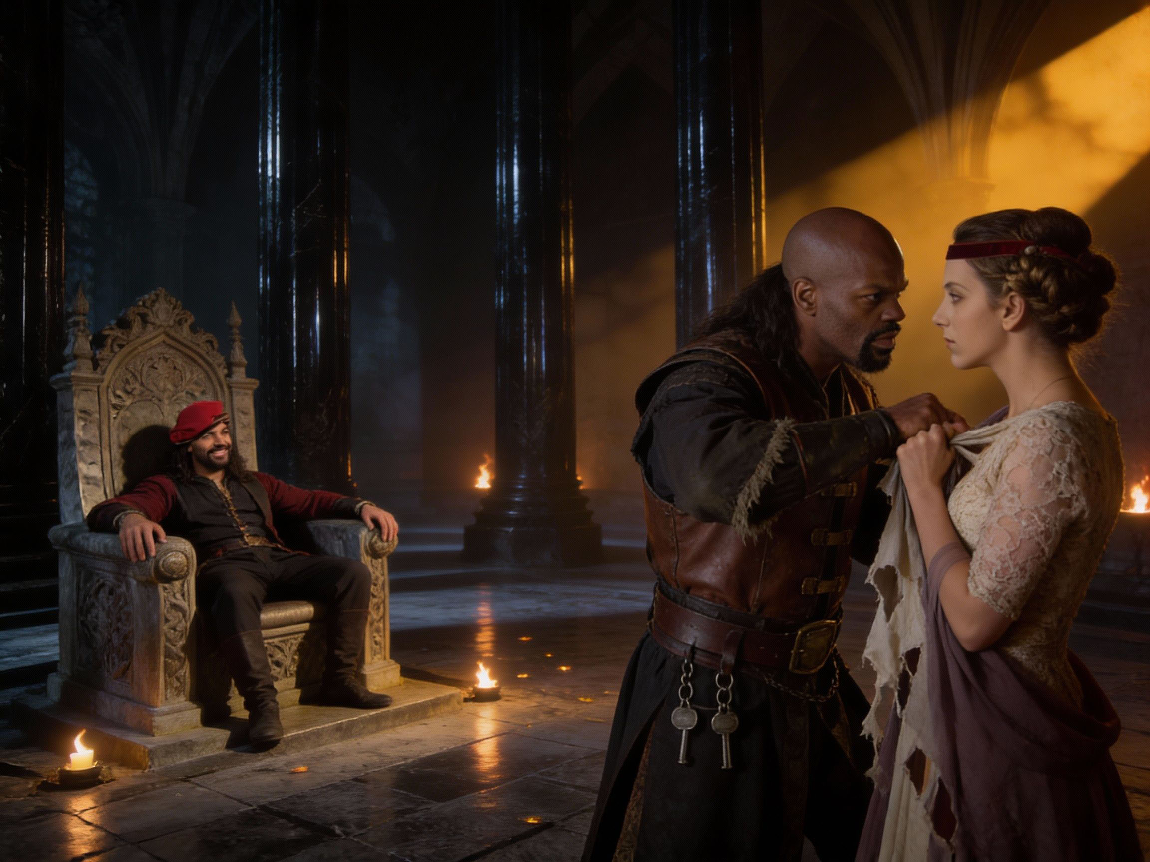 Defenseless,she was presented to the sultan in all her naked beauty, repeatedly looking fearfully at the floor or into the eyes of her tormentors to avoid direct eye contact with the sultan. The men dragged Elisabeta through the throne room until the sultan rose.