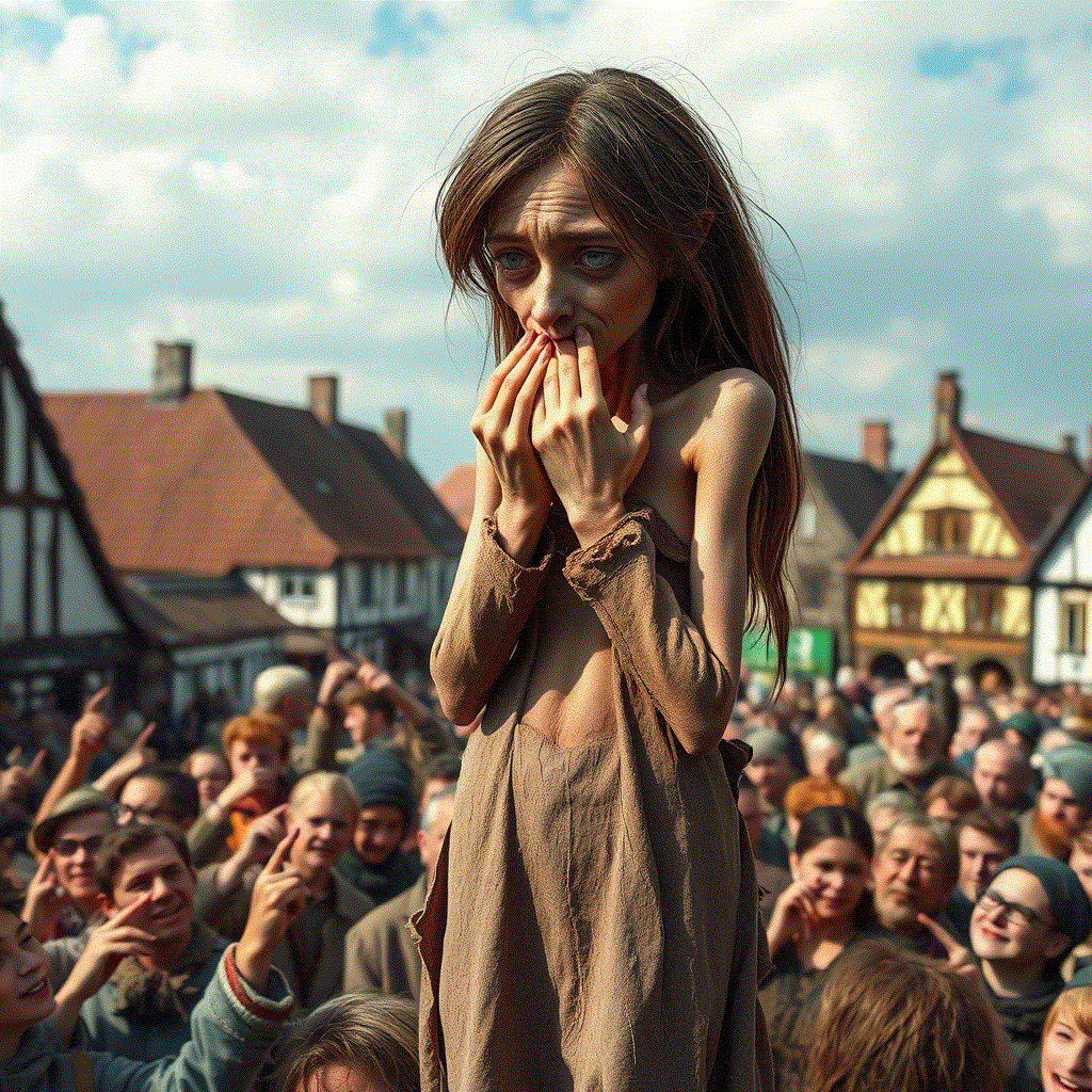 They are brought in a wagon to the middle of the town and placed high on a platform in the middle of the throng. Here they are offered as Schnäppchen alte Jungfern or Bargain Old Maids, to any man who will take them for a penny. With no takers the reverse auction begins. A bounty is offered to any man who will take them. They only need to step up on the platform and kiss the unchosen one on the lips in front of the entire town. The rejected woman stands there cringing as the bounty goes higher and higher and the jeers of the entire village reach a crescendo pitch.