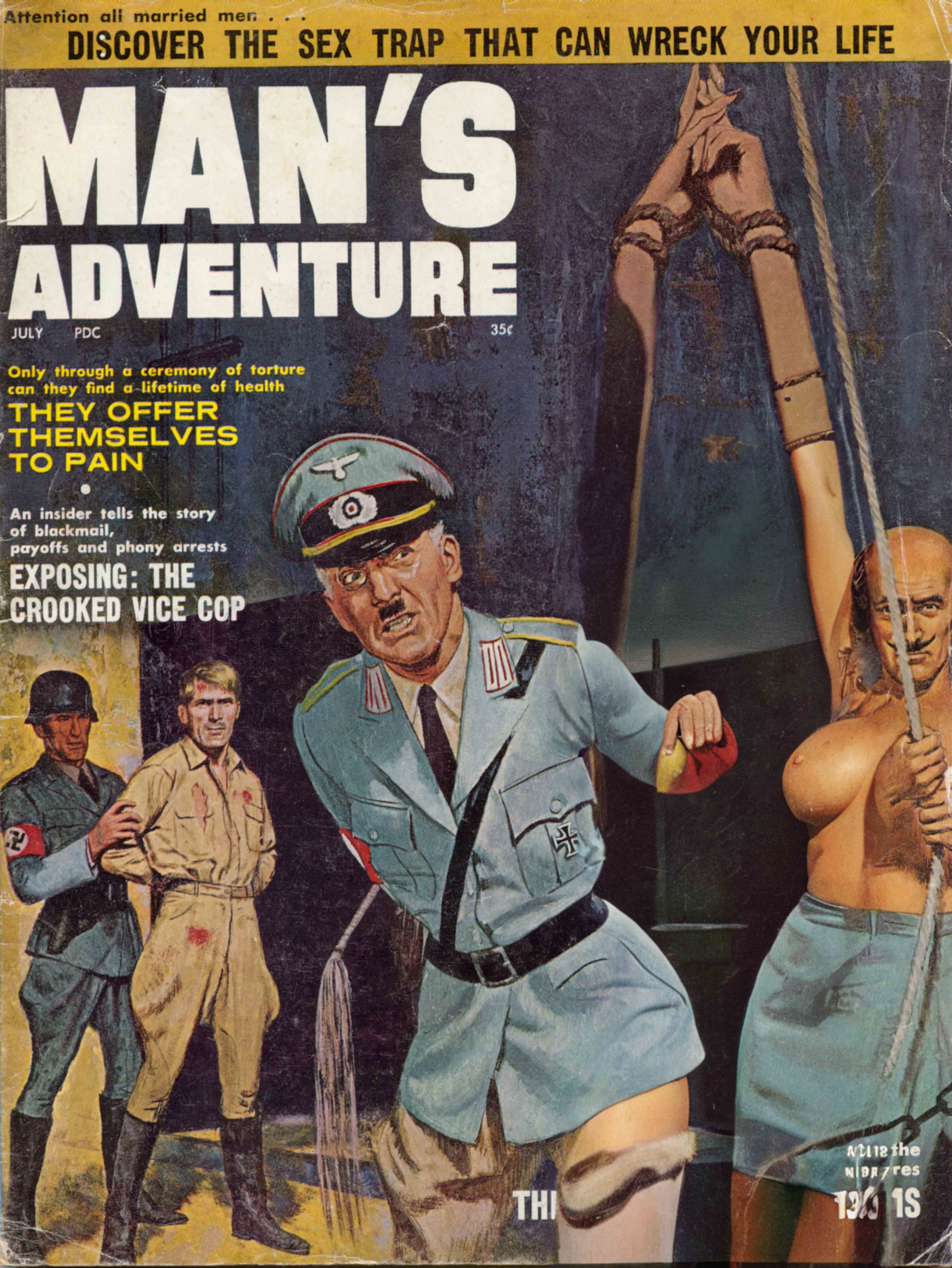 As an example, I was trying to use Fooocus on the Man's Adventure magazine below, but here's an example of what I got. Is there something I should put in to restrain the image created? The prompts I used were: nude female, large breasts, afraid. I only selected the female, starting just below the wrist ropes and going down to the bottom of the page, trying to stay close to her shape.