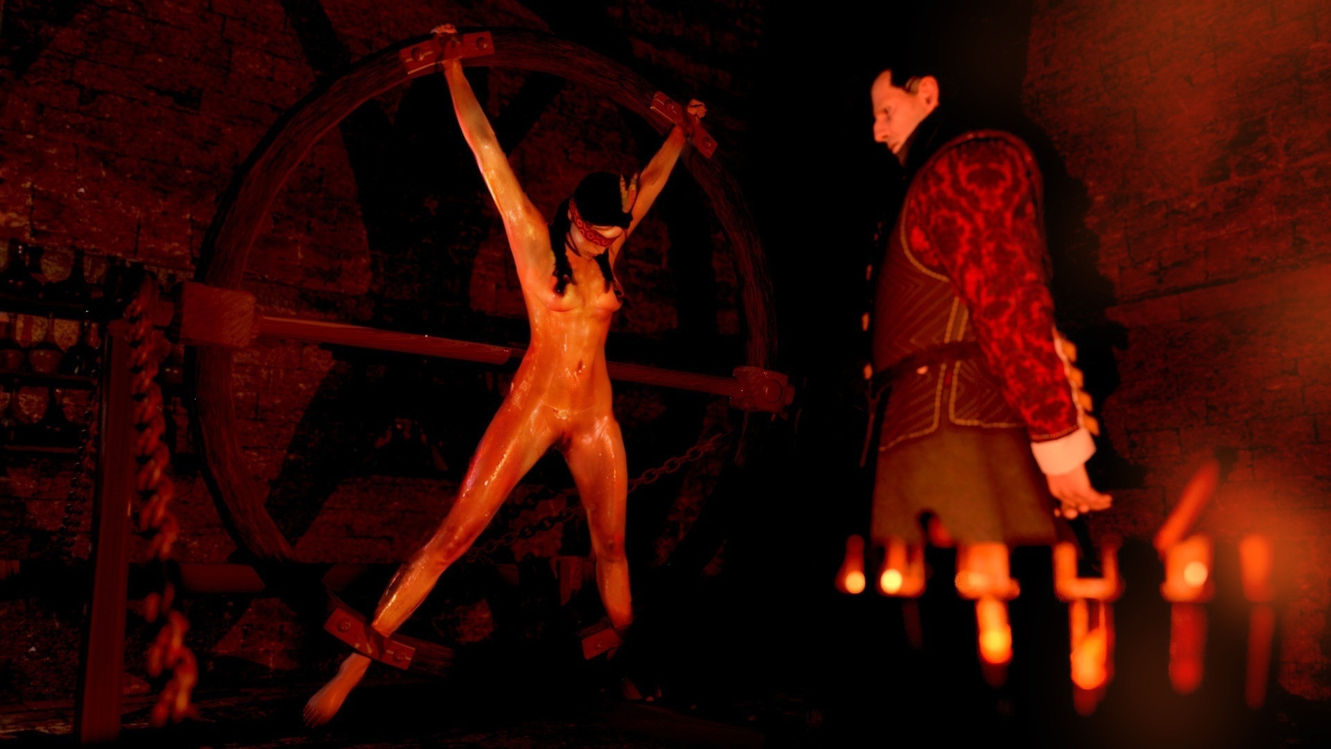 Very good, JD. Of course, you know me, I could now come up with a plethora of variations, for example the sailors wanting some entertainment and thus putting the wheel horizontally, or first, to make her more attentive, throwing a bucket of water over her head, or rotating the wheel 180 degrees and putting her head IN a bucket of water... Or just whipping her a bit... And then what happens when Radovid finally gets his hands on her...