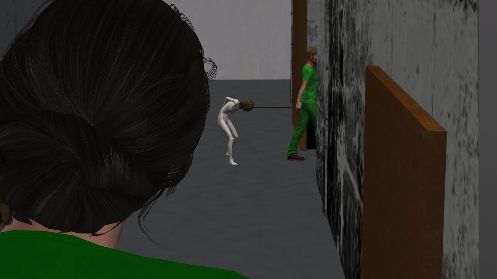 Daria is yanked from her course toward a vacant 'interview room'.
