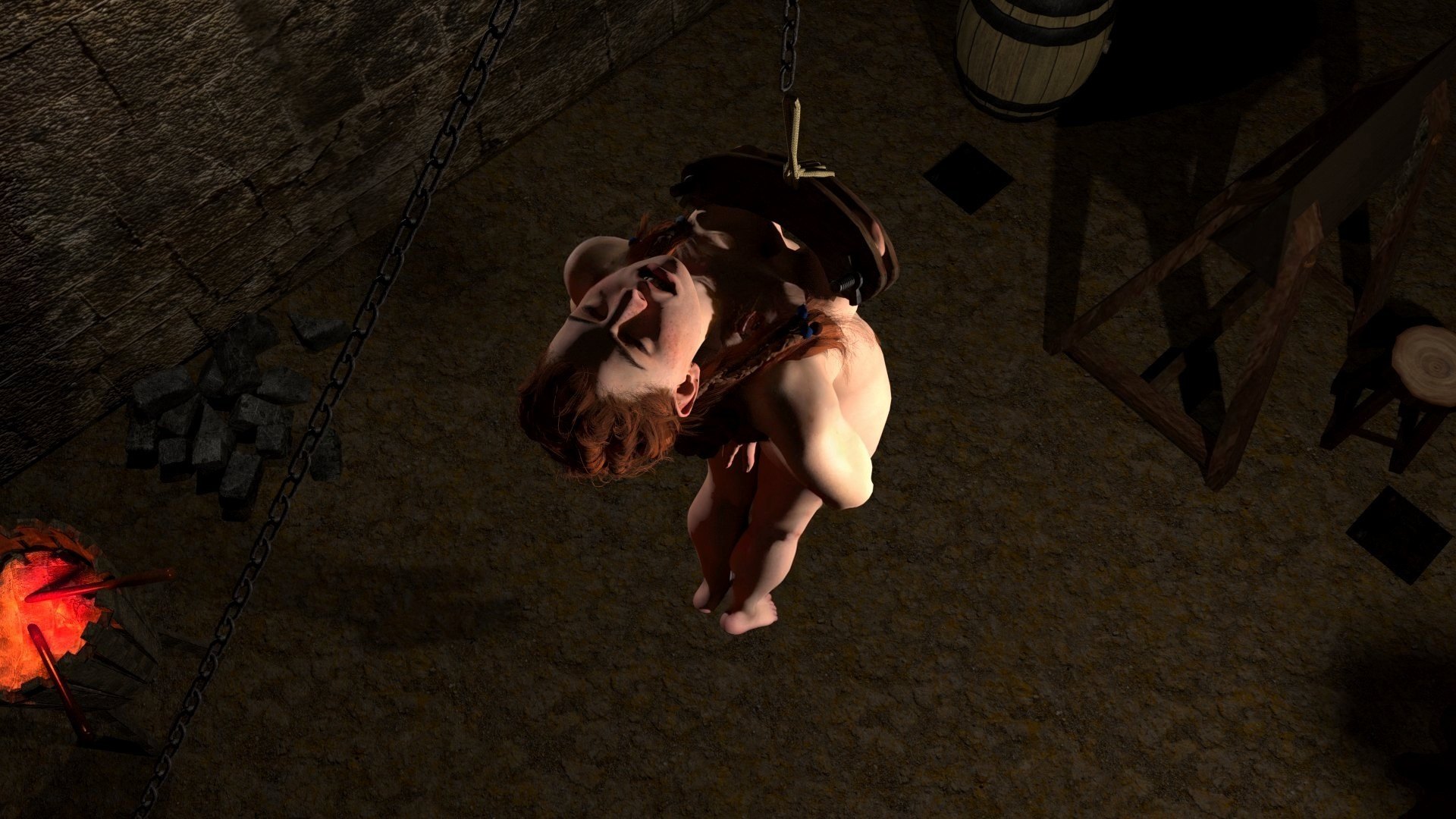 These are really, really good. I'm finally getting to see a proper breast hanging- by crushed tits instead of balloon making ropes. I also think the 3 viewing angles are perfect for the scene, and the arched-back body position is right on.