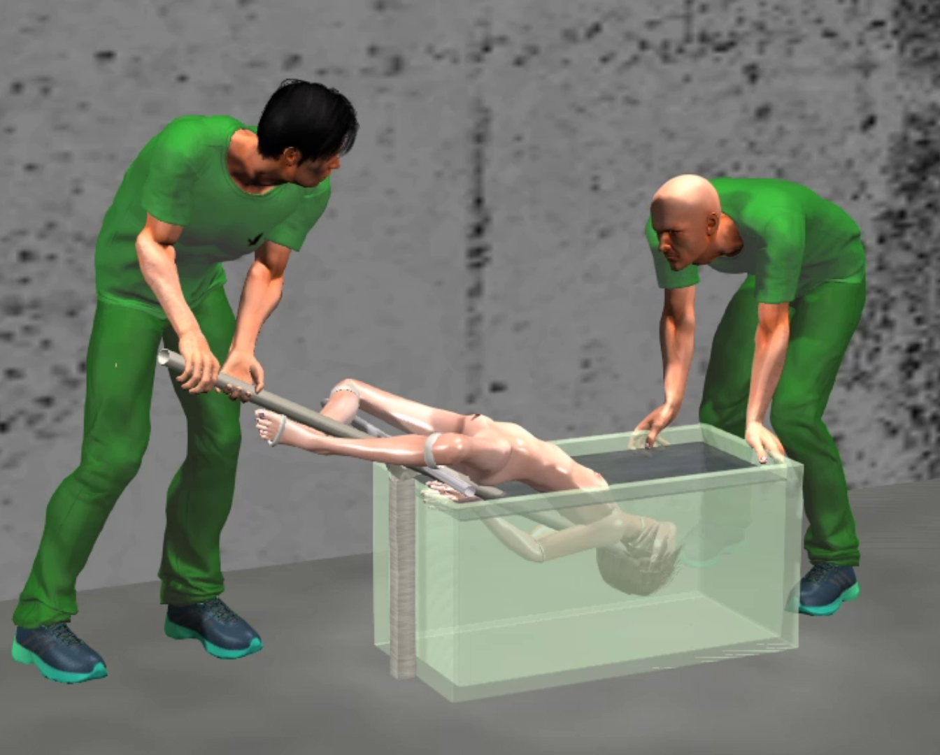 The guard carried on his duty with ease. Endlessly sending her up and down. He varied how long she was under water from 10 to 30 seconds but never letting her have more than 1 or 2 seconds to grasp some air into her lungs. This time she hardly had a her nose and mouth above the water before she was plunged under again.