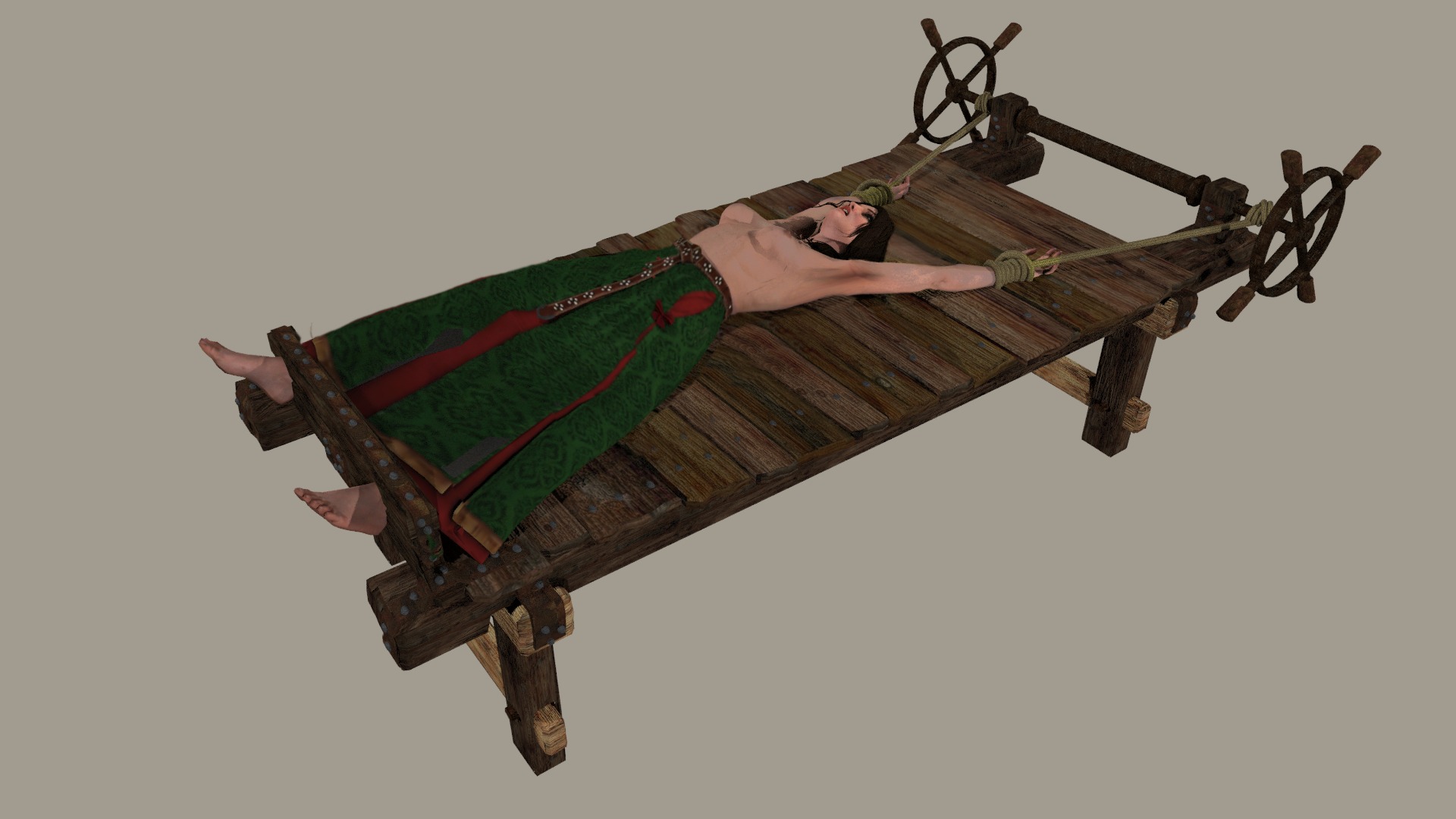 I was replaying Witcher 2, the Enhanced Edition and among new content added, there's a letter that describe the torment of Baroness Mary Louise La Valetta in her own castle dungeon, aside from the whipping and the threat with red irons. Somehow before the ordeal, when it was judged by the torturer that she's not ready yet to talk and she was put on the rack. No graphics scenes, just a letter found in a random place in Act III. And yet, it made me think ...