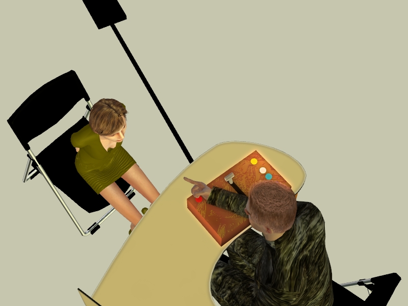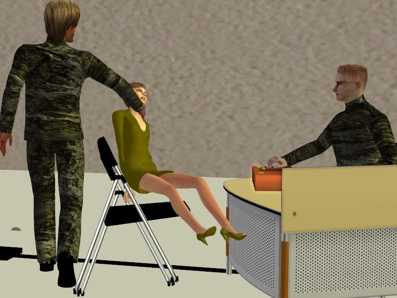 The other interrogator looks on as pain racks her fragile body. The other contemplates when to change the shocks to a different sensitive area.
