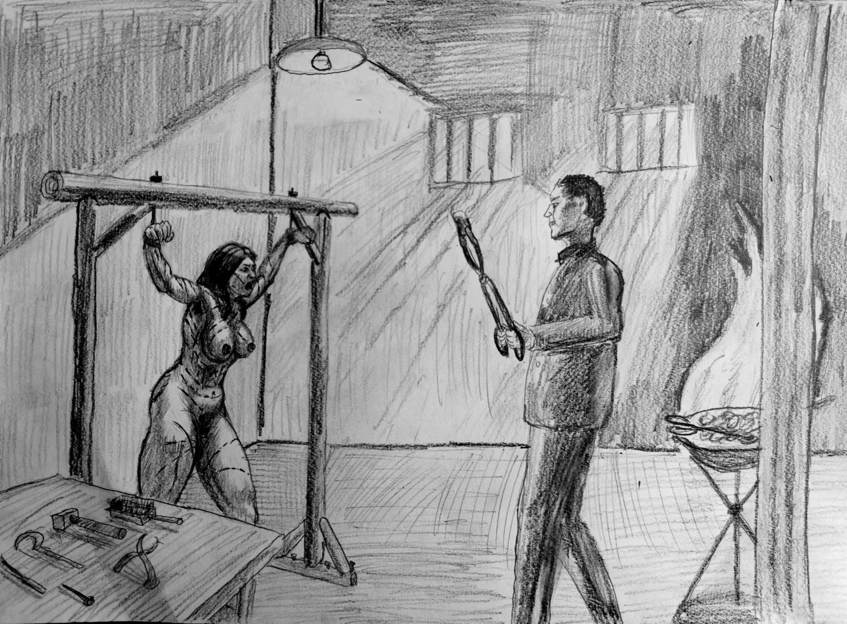 Oh wow...... I love this one. Really good body position and action... like the hand in her hair, and best of all her facial expression that one would expect to see from her torture. You have really improved a great deal in that area.