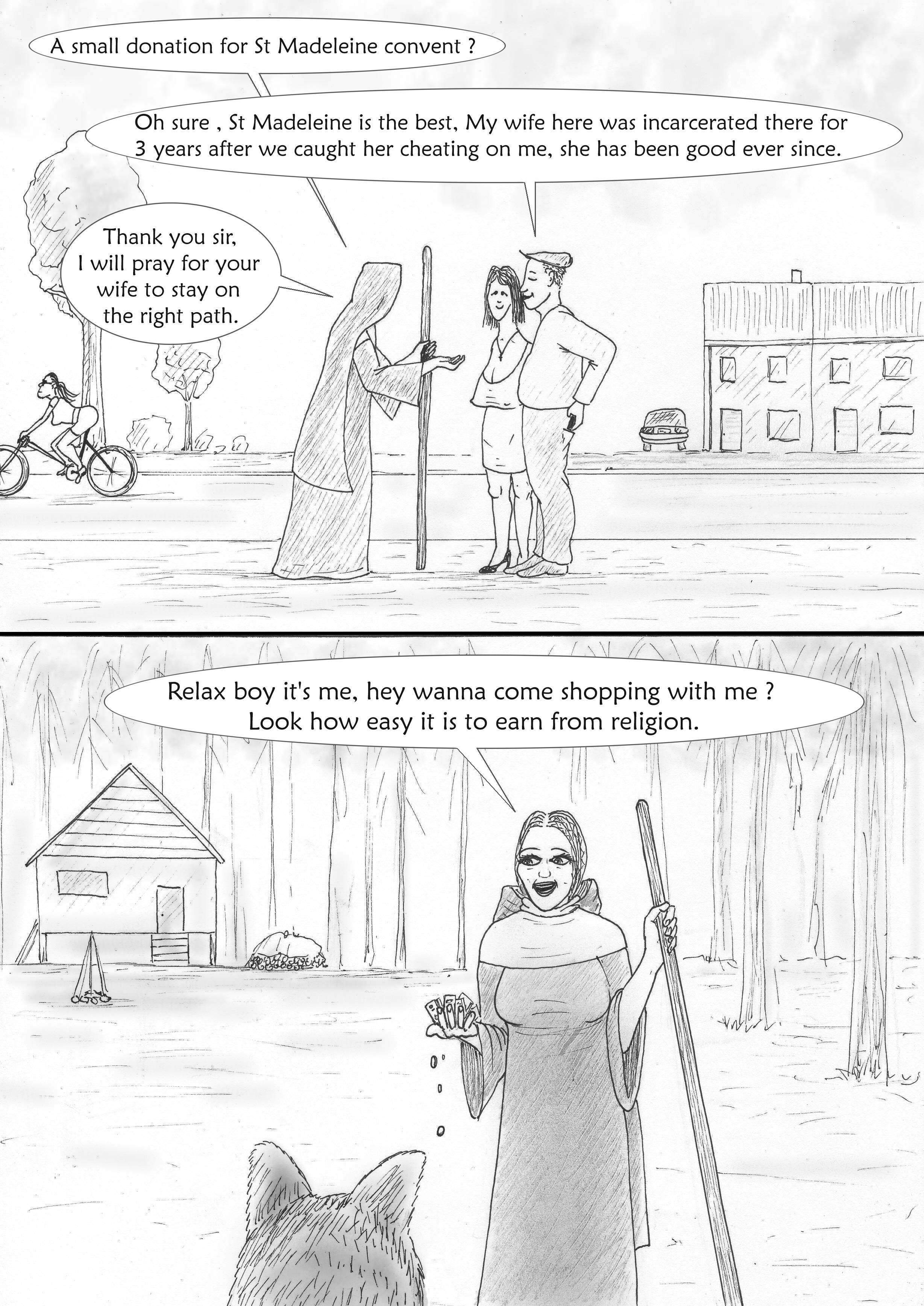 I love that the wife's breasts are hanging down to her waist after 3 years at St. Maddy's. They are truly the best!