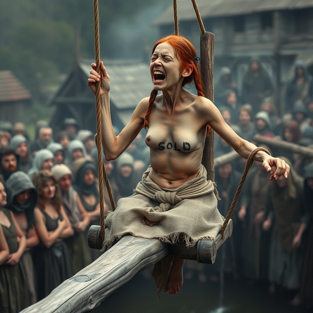 See her spew up filthy slime, on the ducking stool.