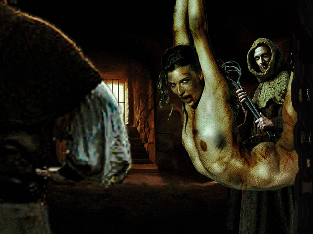Some pics need immediate attention. This one, from Darthsaad's thread was one of them. The interrogators have gotten instructions to leave no traces of torture on Cecilia's body. They have devised a devilish combination of tortures: prolonged and excruciating suspension plus the agonies of the "hot room" where temperatures can surpass 110 degress.