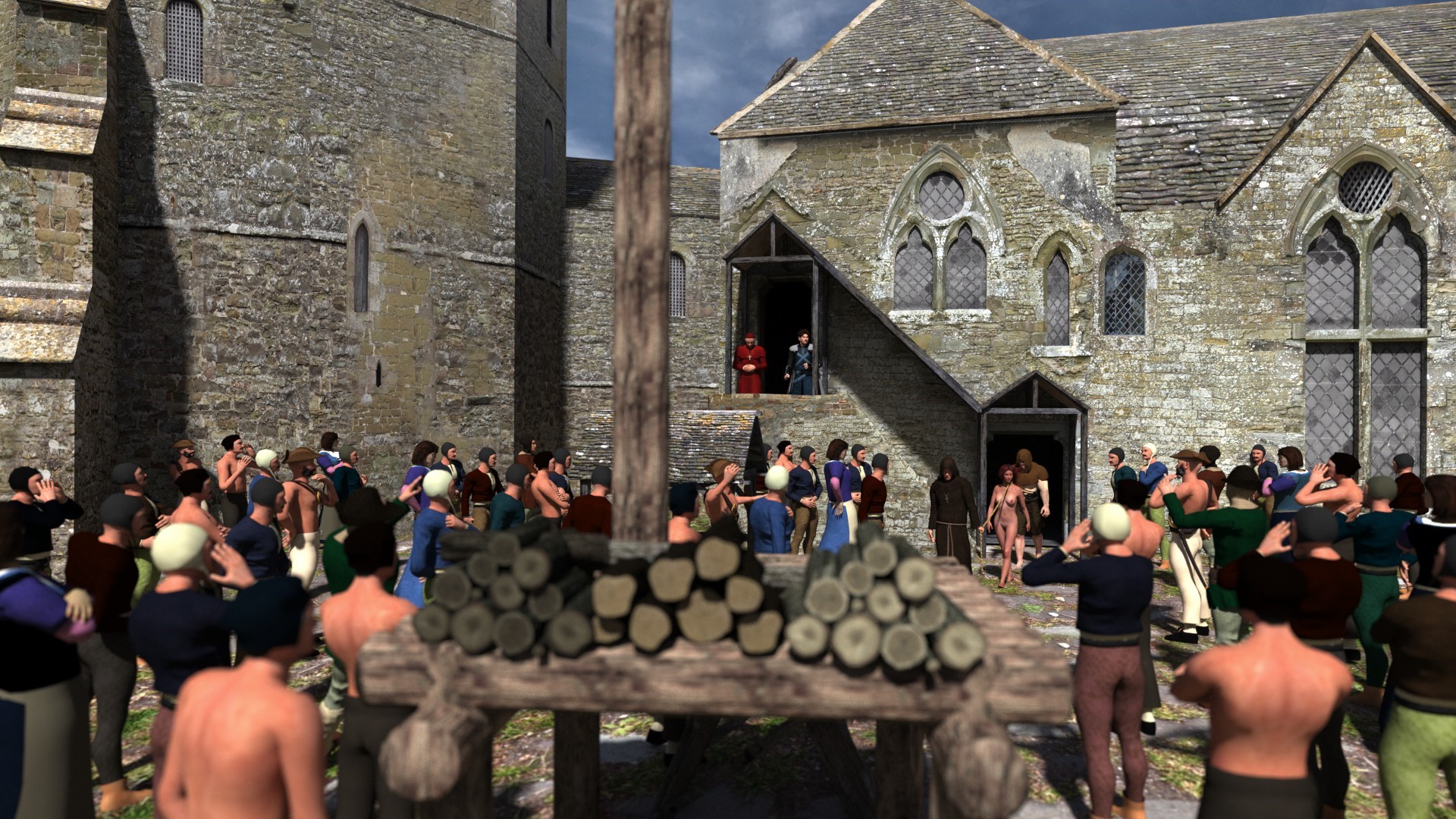 Having climbed the stairs, just before entering the square, Gareth and the baron met her. “It is usual” said the baron “to strangle the condemned to burn at the stake in the cover of the smoke. But for you we arranged the haystack so that you will definitely have time to feel your feet and then your legs being consumed by the fire before the smoke will kill you. In a few minutes you’ll wish you were back in the torture room”.