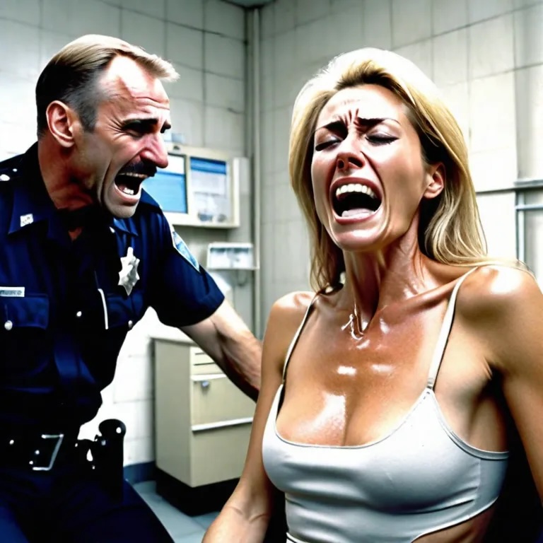 She couldn't bear the weight of the fat cops; she fell, a bastard kicked her in the pussy with his boot, and blood filled the area.