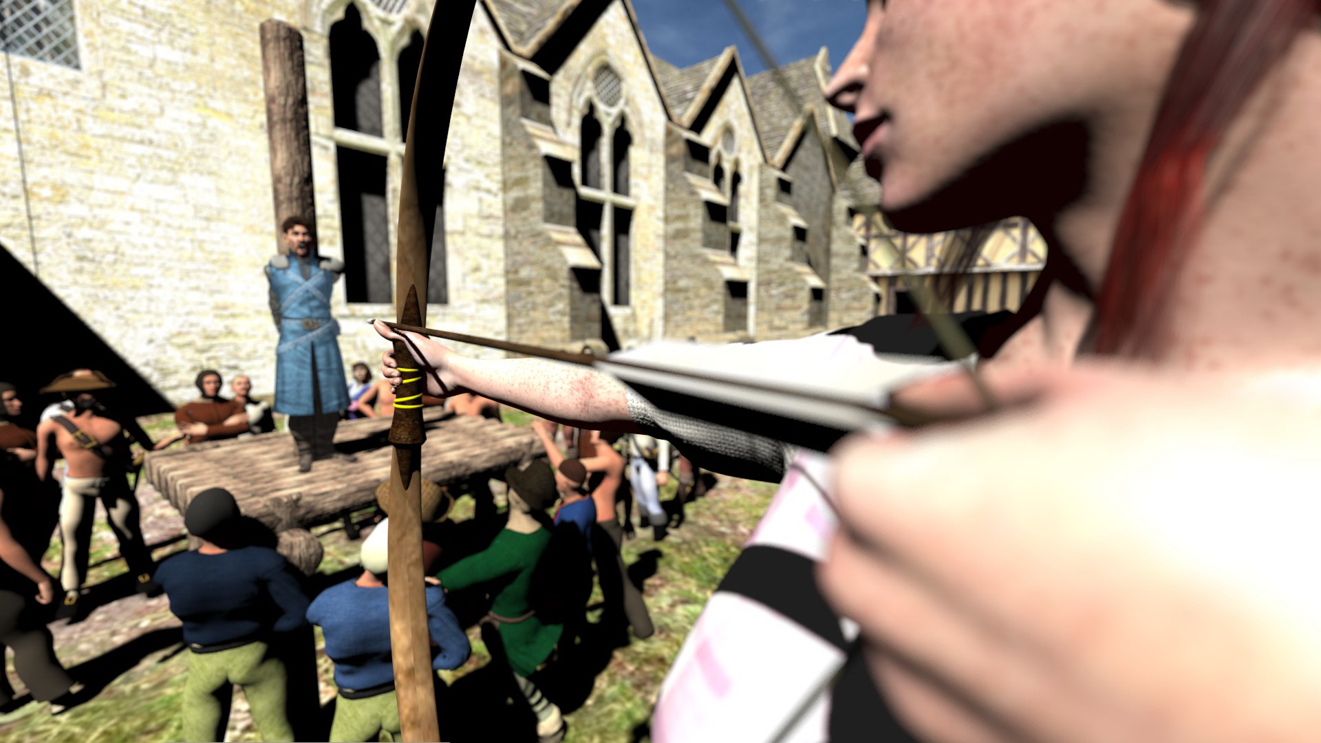 She stepped away from him, till she reached the opposite end of the courtyard. Then she cocked an arrow and started to draw.
