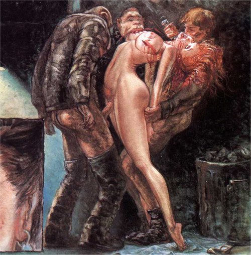 The first one is especially cool because it features Scully (X-Files), she's in a suspended spreadeagle, being gang raped by aliens! (Note that the aliens have double sexual, er, appendages. And green jism, too!)