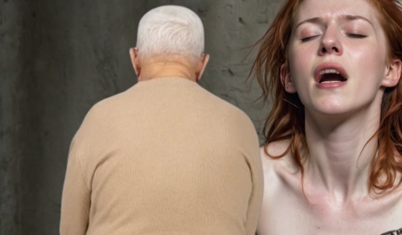 An alternate version of Laurita's ordeal picture 2, with her body shown waist up and a different stepdad AI character.