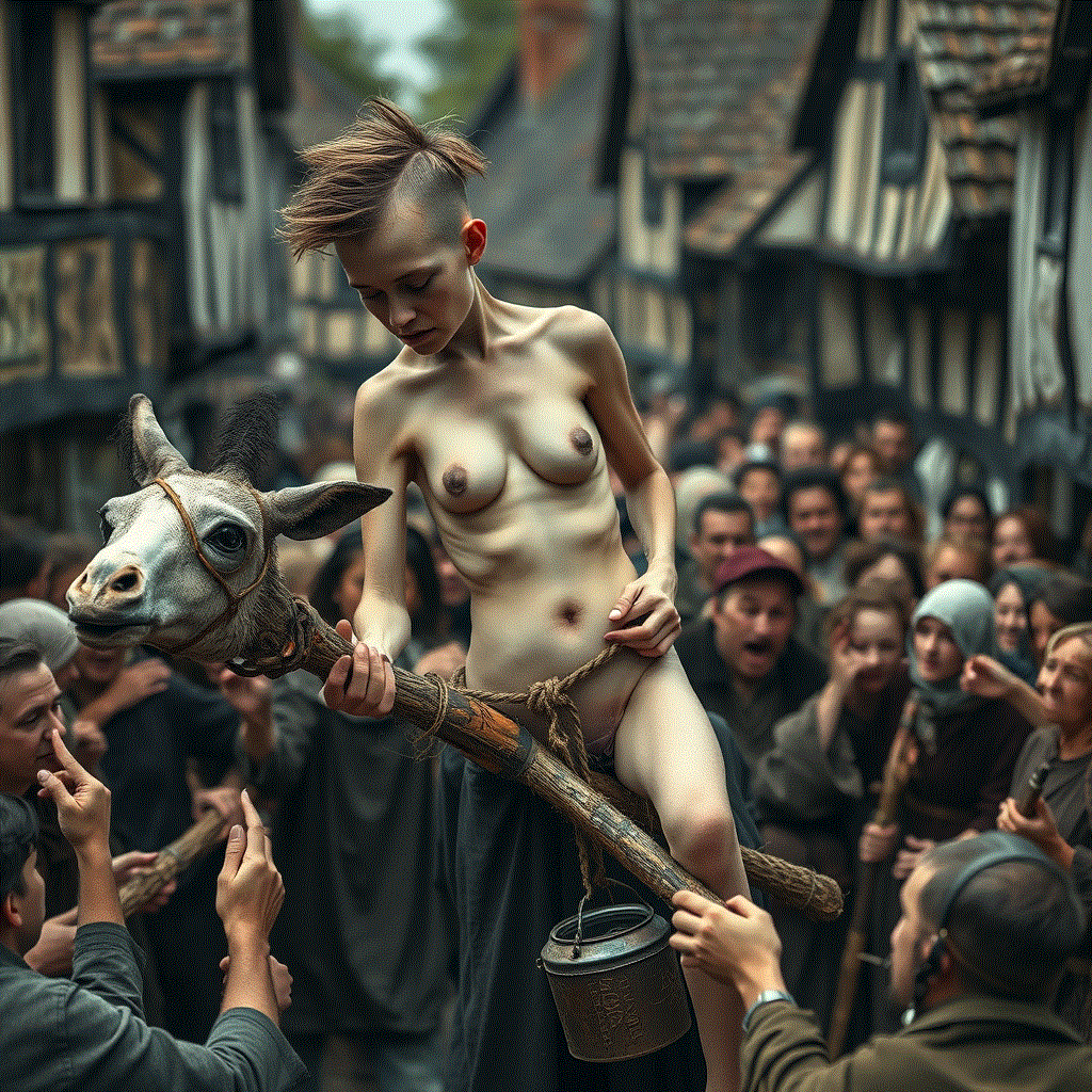 The wooden horse, forced between her thighs. Carried through the lanes of the village, screaming in agony and terror.