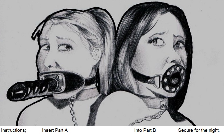 The gag should also be used as a punishing tool on slaves which have been too talkative, to remind them that their mouth's primary function is not to speak. The gag must be left in place for no less than 5 hours for the punition to be effective.