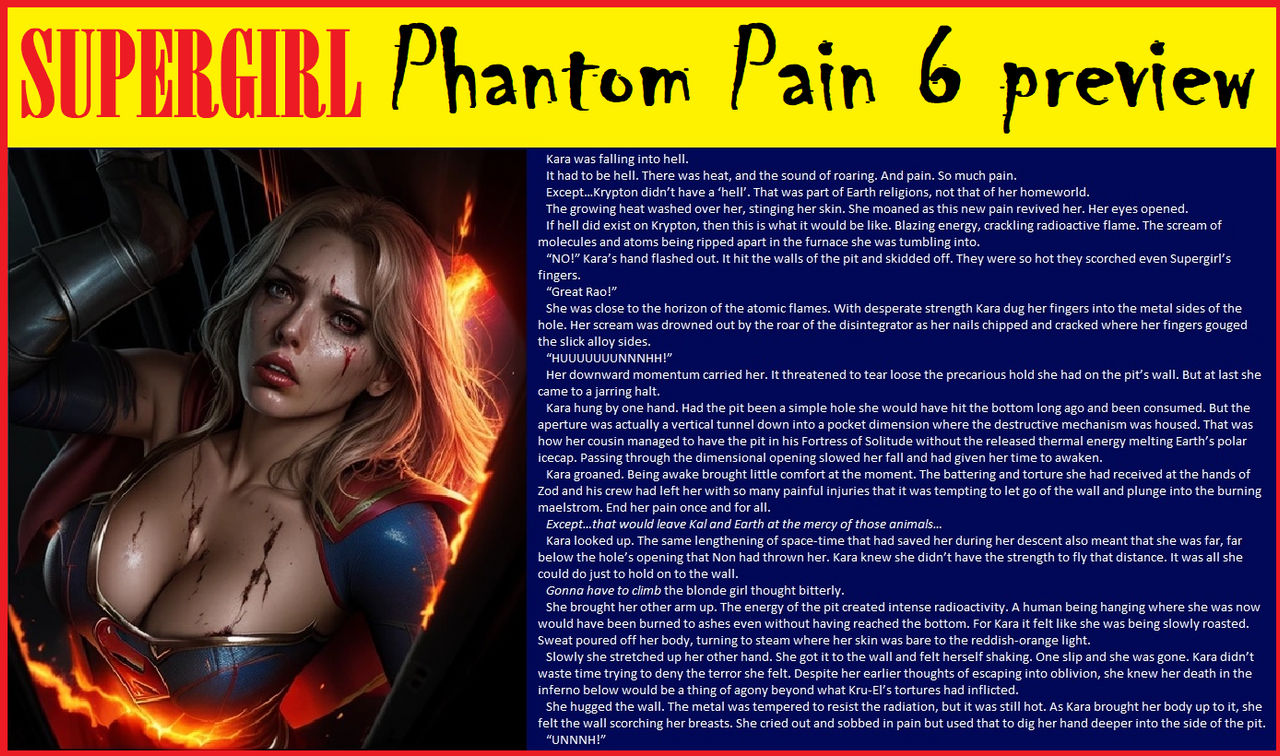 Seven electrifying pages of writing and artworks from this ADULTS ONLY tale of superheroine suffering! Available COMPLETE AND UNCENSORED in Tier 3, with complete chapters posted in Tier 4.