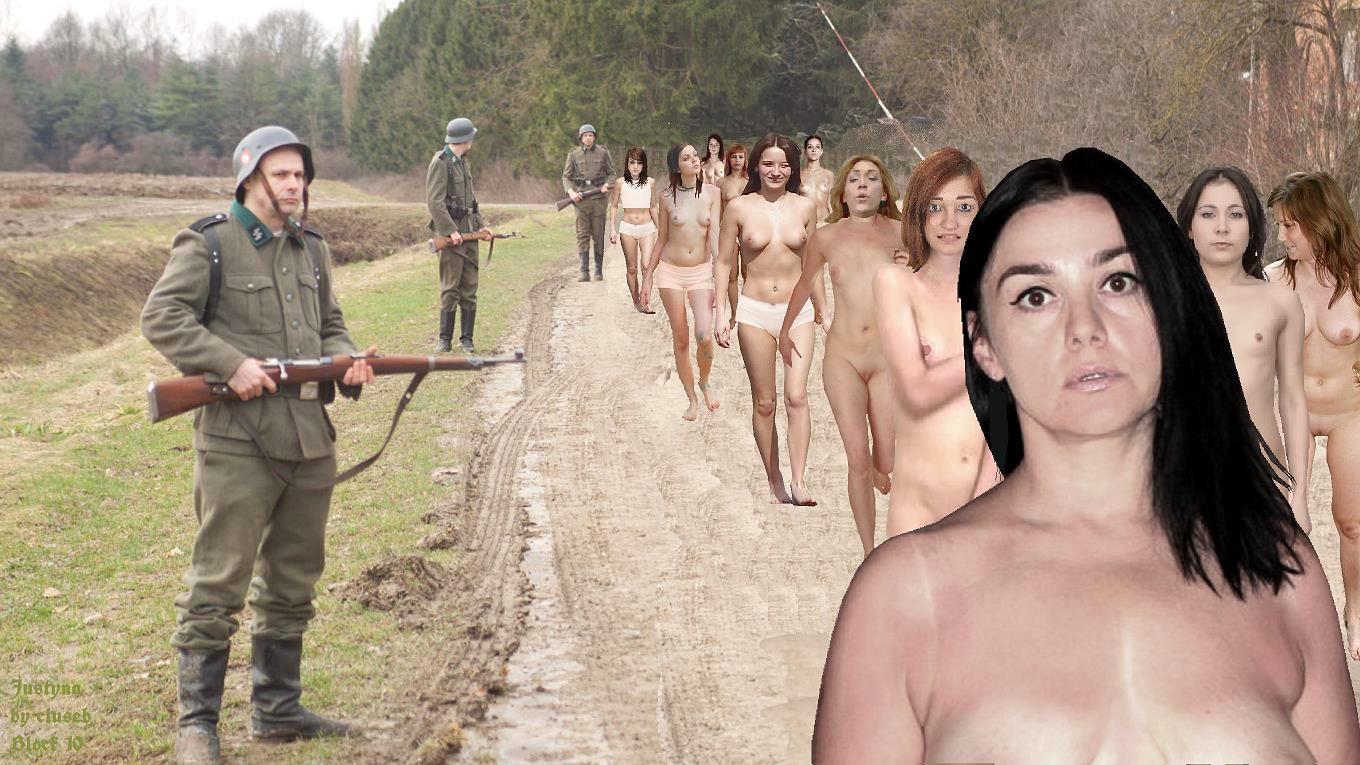It would be very nice a hard, 50-50 rubber truncheon strokes on theyr bare soles prior to this march...
