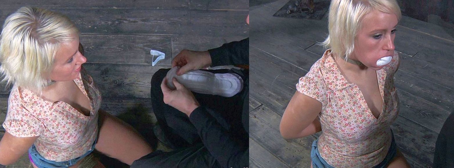 Very hot sequence. Cute gimp in sexy lingerie, and she shows fear, anger, then resignation. She'll willing do deep thoat bjs after this.