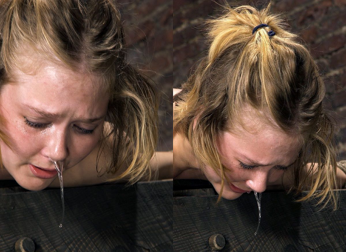 He starts wetting her nipples, which kind of turns her on, but now her ankles are also tied, and she's getting a little nervous.