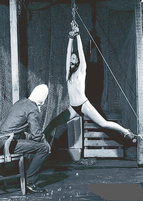 Of course, being the sadistic bastard that I am, that rope would be replaced with barbed wire and a second block added to it.