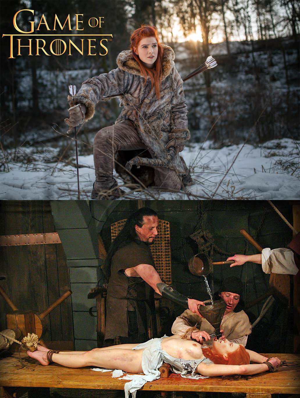 Rose Leslie. Ygritte. While I would like a little more flesh on her chest, the remaining torso musculature more than makes up for that. The kind of face that will look good grimacing in pain. That she is a barbarian woman warrior adds strength and courage to her enduring the torture. And she's a redhead.