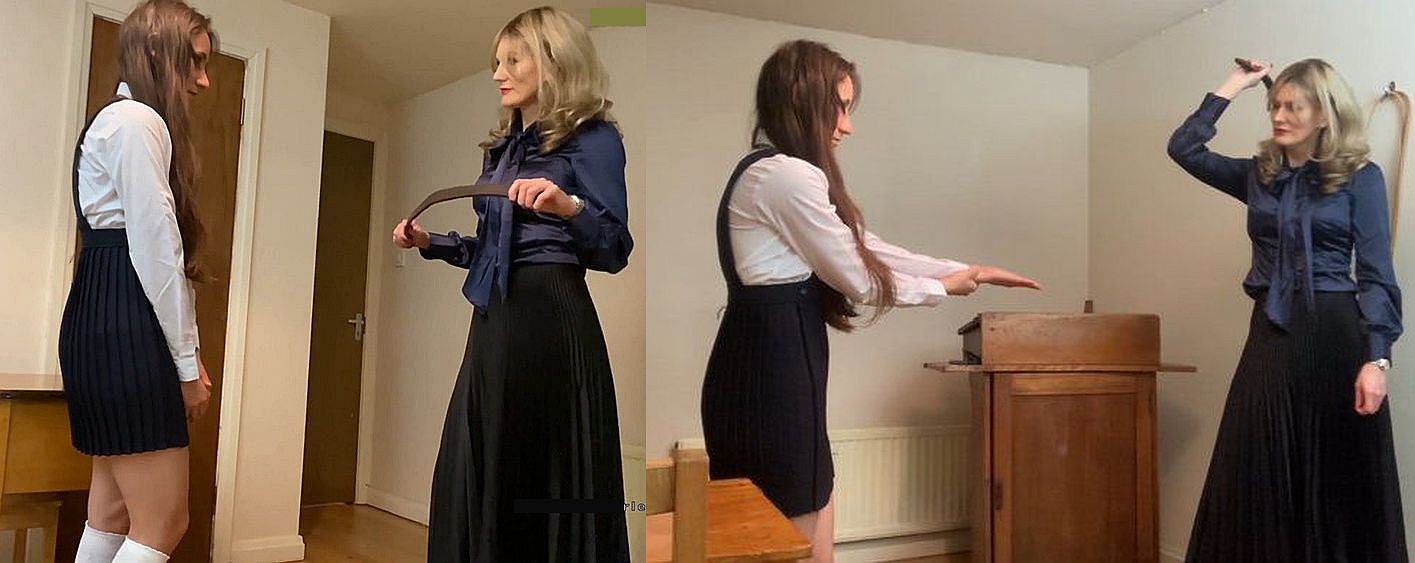 Make stand with panties and dress off, legs apart, bent forward with ass up high, and then thwack em with 50+5 cane strokes. The extra 5 just so they remain aware who is in charge.