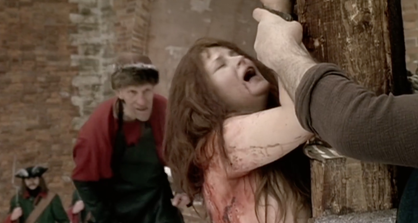 The fact that this women who has been sentenced to a flogging is enhanced for me, as she is unkempt, with missing teeth and a flat chest. Nothing like earthy realism.
