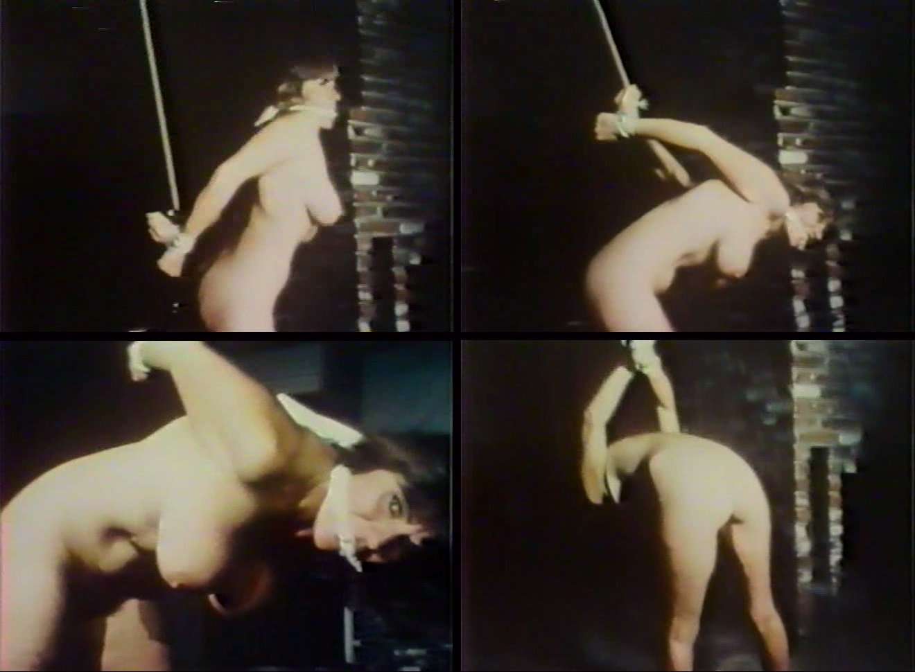 And now here is some retrobdsm, with busty star Uschi Digart, naked, in strappado...
