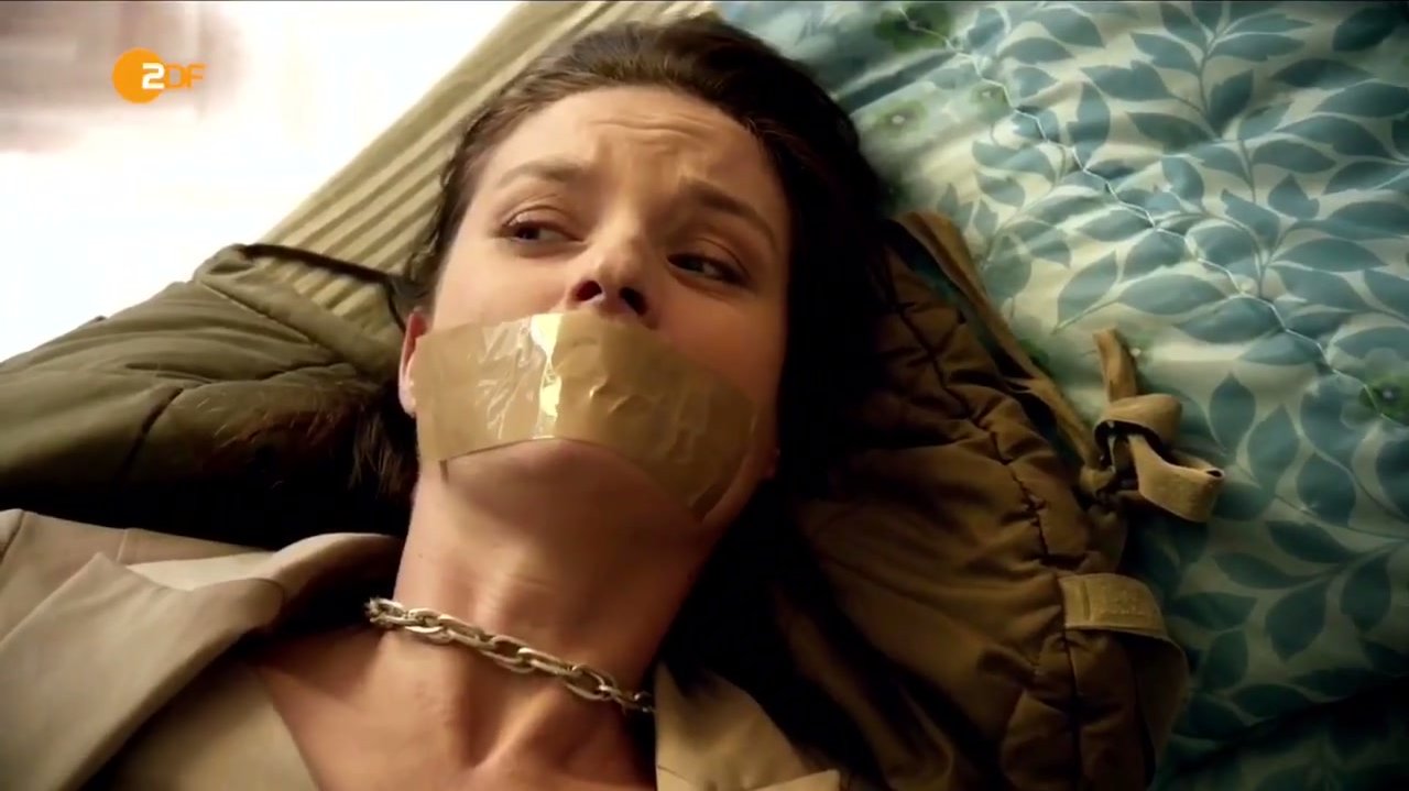 Beautiful Ashton Leigh is gagged in a “Breakout Kings” episode (season 2, episode 6). I love the abject fear she exudes… she seems genuinely terrified. Fantastic sounds coming from behind that gag.