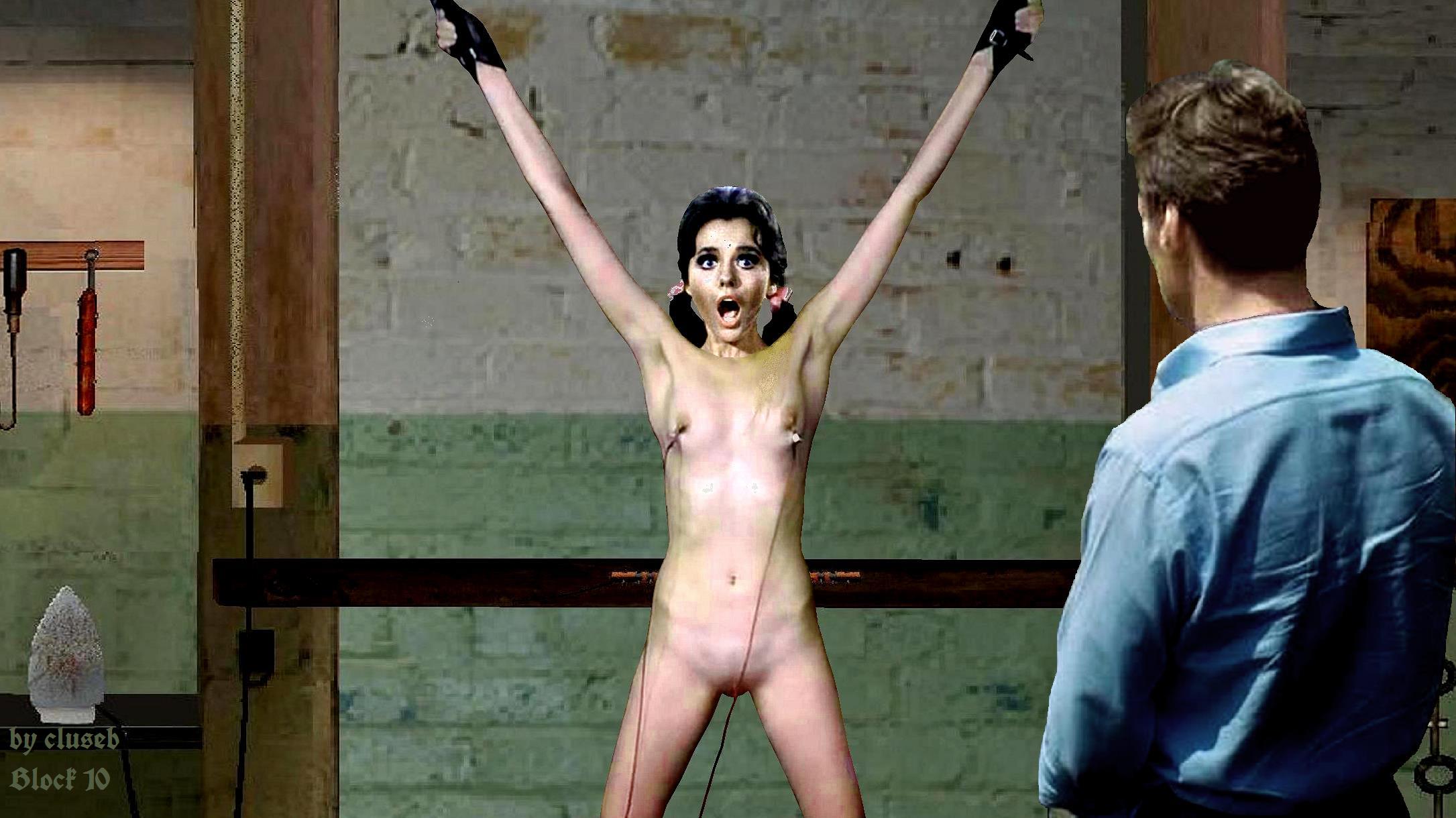 This INSEX production was called “Curious Elise,” in which she comes upon a torture chamber and admires its many implements, most especially the dreaded Parilla (the heavy metal lattice, with a space at the legs for the torturer to gratify himself). Being curious, Elise allows herself to be shackled spreadeagle to the device, and she is subjected to horrific electro shocks, to her nipples, pussy and all over with an electrified wand. I love the way she is restrained, with the heavy iron cuffs, the leather strap around her middle, thighs and neck straps, and eventually a board behind her head. It’s seriously tight, and looks horribly miserable.