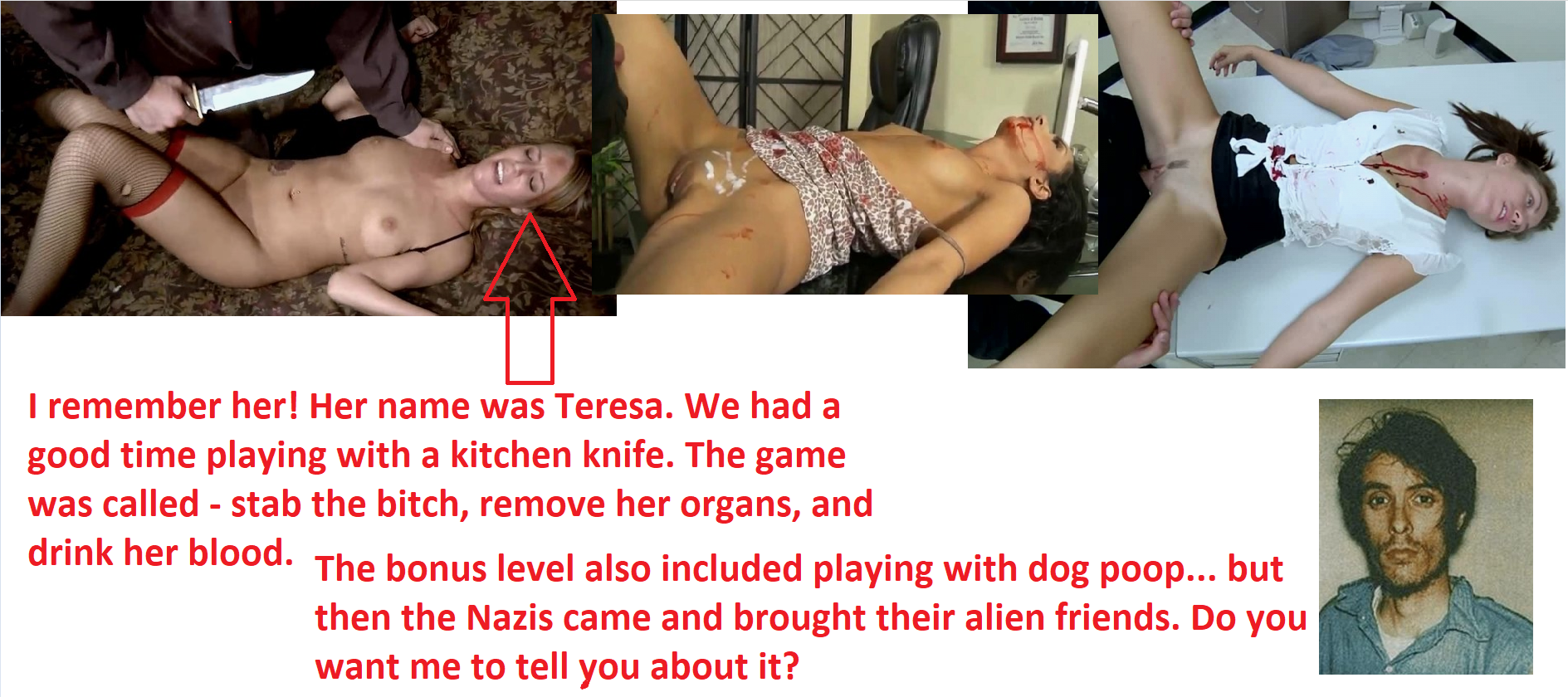 Richard was a deeply disturbed man, and I actually don't know why I'm talking about him here since this criminal in no way influenced pornography. Maybe aliens or Nazis - maybe even Nazi aliens - forced me to write this.he had also urinated and defecated on their infant child's bed and clothing.