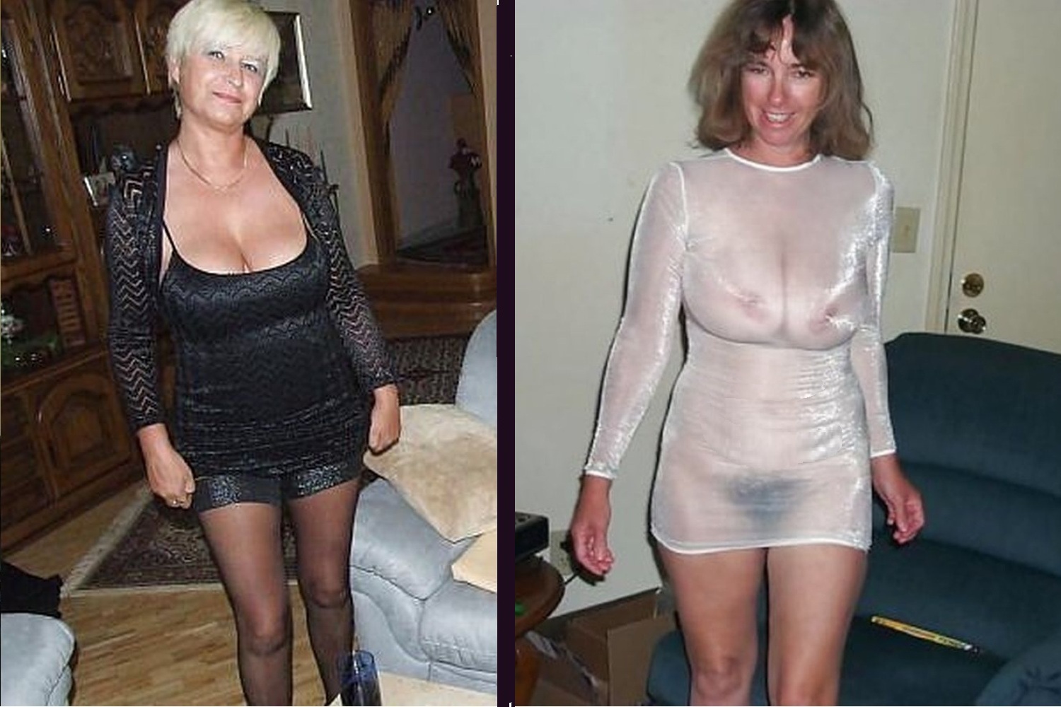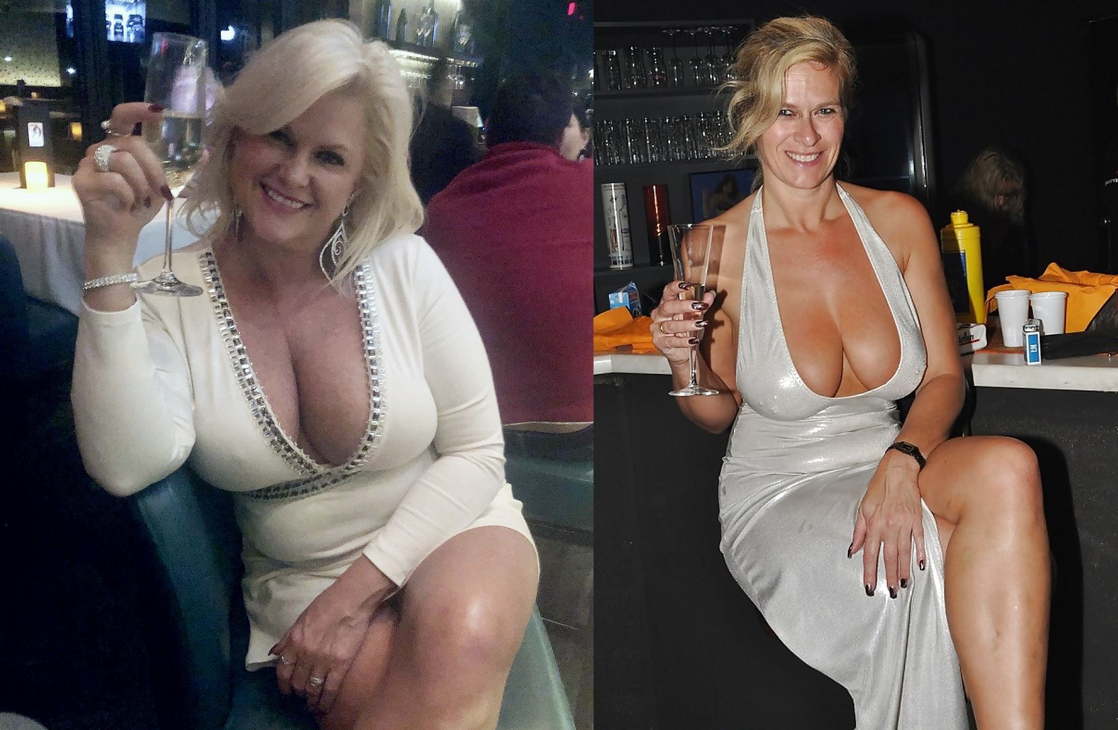 But kind of a nice contrast, a naturally busty blonde in black, a naturally busty brunette in white? It would be exciting to strip them before the tying.