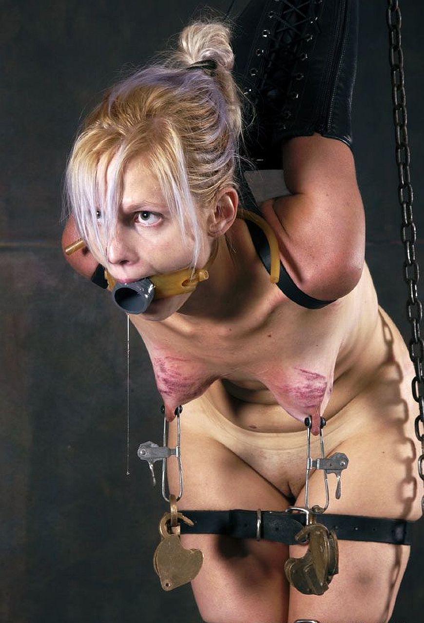 gwen is resigned as he ties her nipples, the ratcheting mechanism clattering. the breasts rise, Bills asks her if we continue she answers what is her slave and has no choice. and the machine restarts, click.. click....click. she screams ho no, bursts into tears. she is his slave.