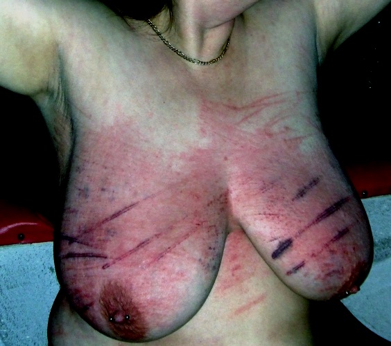 These are not whip marks nor hot wax burns but obviously this girl has suffered some hard treatment recently.
