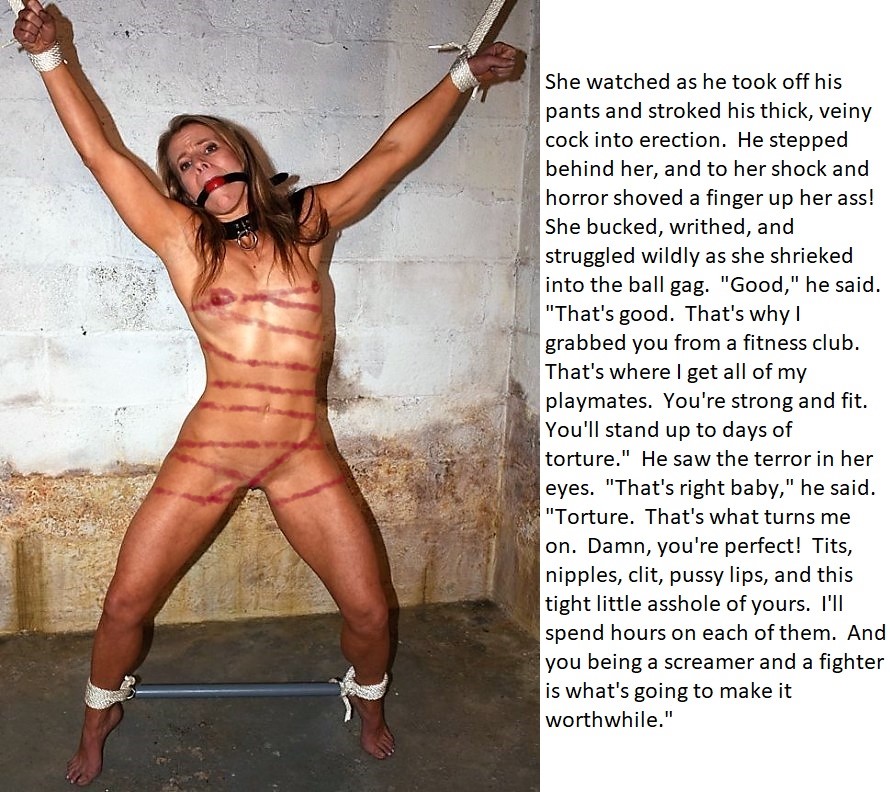 Just as the cement reaches her breasts, the less than brilliant kidnappers have an epiphany and realize there's still a way to salvage the situation. Sell her for top dollar to black market slavers in the Middle East.