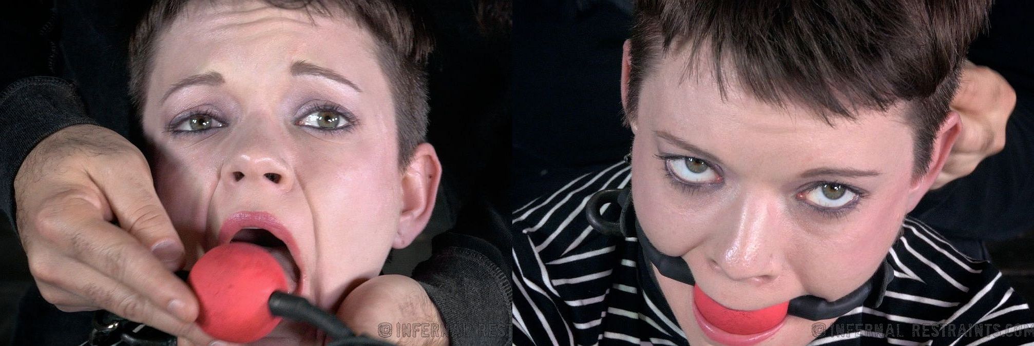 Doesn't she look nice with the big red ball deep into her mouth ?