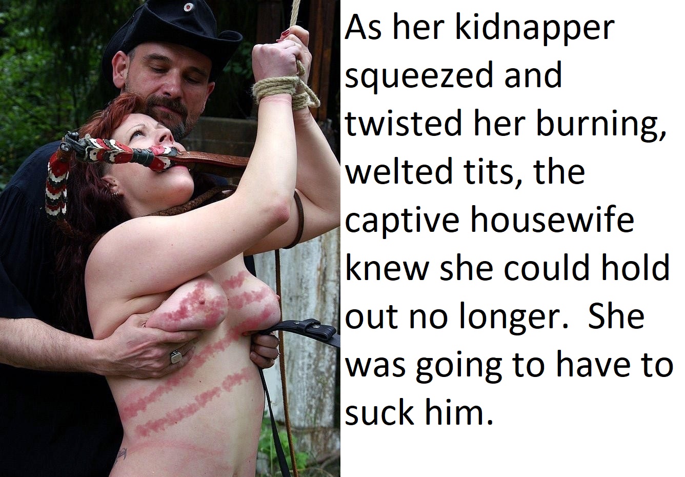 That's right Sweetheart. We need a little video of you with this in your mouth to send to your husband along with the ransom demand. Now get to it.