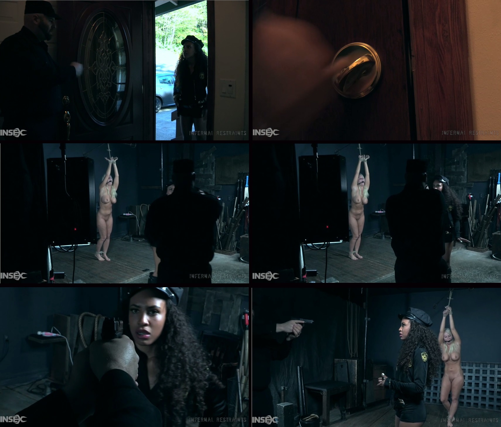 Here's a sequence: Demi Sutra is a female LEO investigating a noise complaint in a dark, creepy house when she is captured at gunpoint: