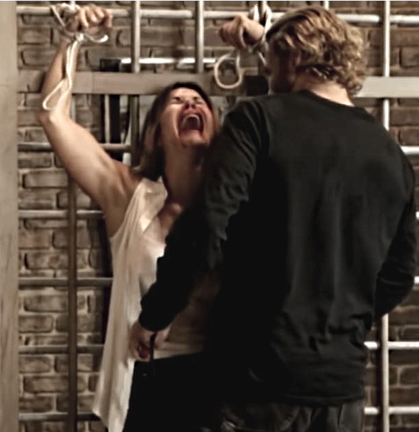 In one episode, the blonde leading actress is to be whipped. Her back is exposed. I looked forward to the bare back whipping.